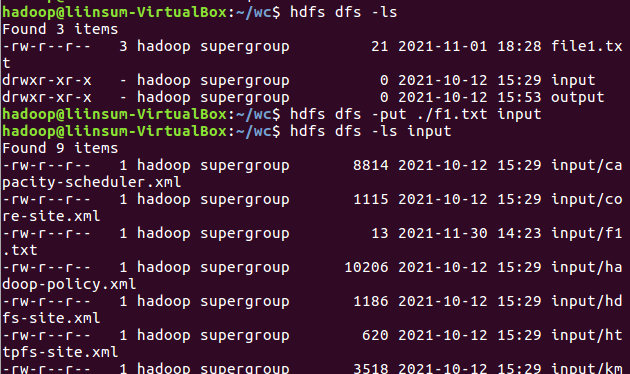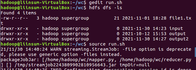 - 运行hadoop-mapreduce-examples-2.10.1.jar
