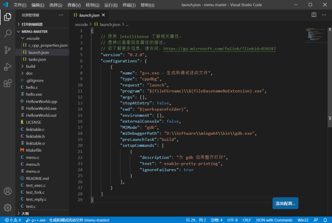本文以VS Code 和GCC工具集MinGW为主要环境编译调试课程项目案例——命令行菜单小程序menu(https://github.com/mengning/menu),在阅读分析源代码后,结合代码分析其中的软件工程方法、规范或软件工程思想。