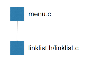 menu项目的代码结构如下,其中linktable.h用来存放链表数据结构和它的操作,其他的业务逻辑层代码都在menu.c中,在menu.c中只需要导入 linktable.h 头文件,就可以用其中的数据结构快速构建具体的业务逻辑,而不需要从头定义底层代码。将数据结构和对数据结构的操作与业务逻辑分离开,这里就体现了模块化的思想。