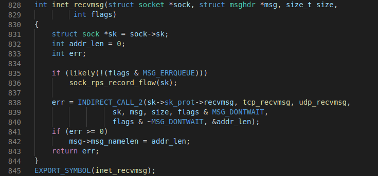 继续追踪这个函数,会看到最终调用的是inet_sendmsg