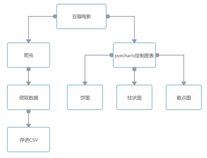 利用requests获取豆瓣电影的js文件并转换成json,然后提取评分、名称、评论数、类型、地区、时长这些数据利用pyecharts里面的Echarts生成饼图,柱状图,散点图。
