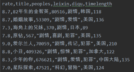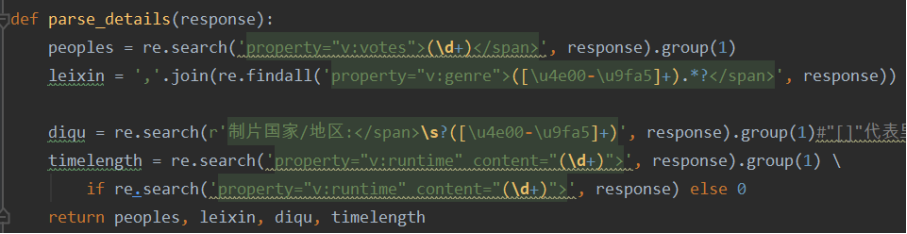 (5)通过正则表达式提取,解析评论数,类型,地区,时长的数据