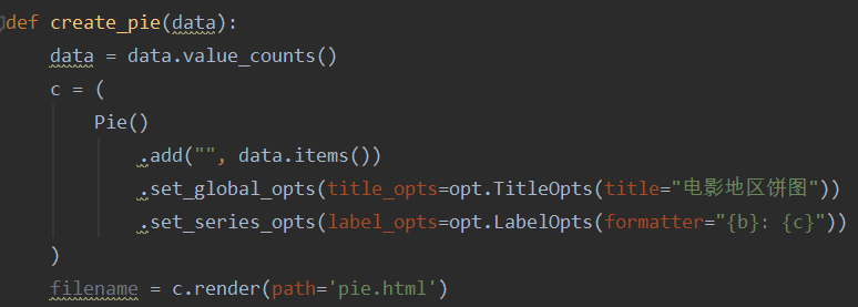 (1)通过传入data这个数据,使用pycharts把数据生成电影地区饼图,并渲染到pie.html