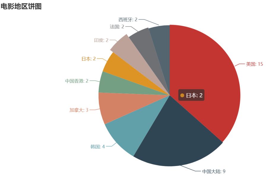 对电影地区进行分析,然后获得数据进行分析,并绘制饼图