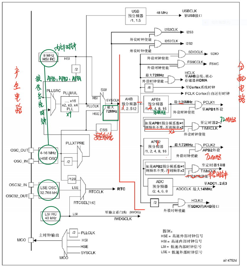 内外时钟源选择:不止系统频率72MHZ,还可以选择外部时钟,