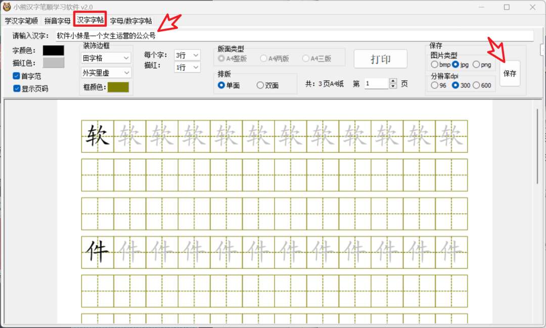 2️⃣ 智能字帖生成:自由定制田字格/装饰边框/字号颜色