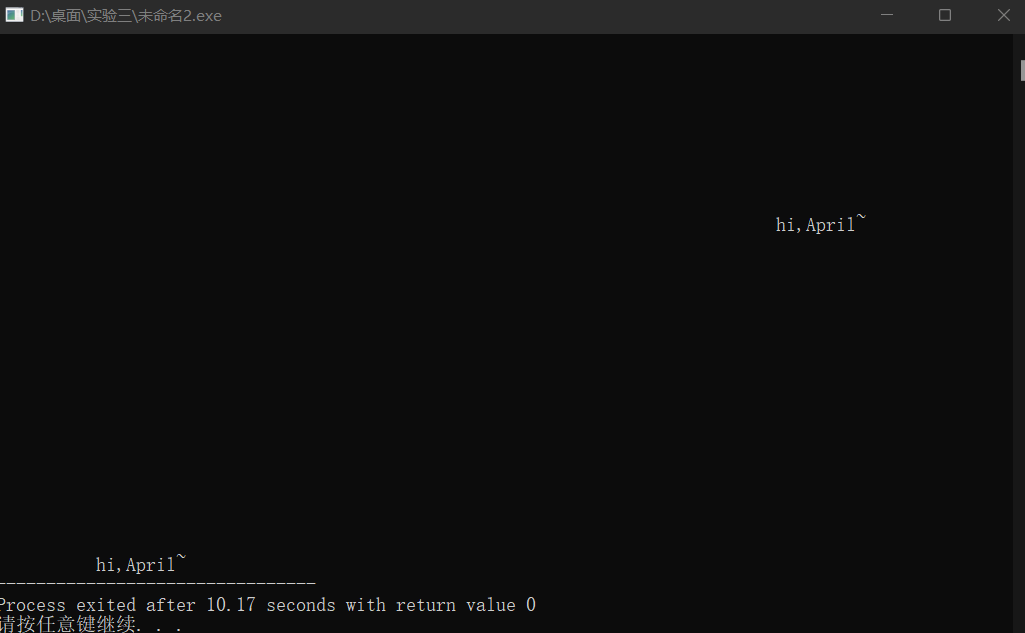 功能:输入十个“hi,April”,间隔1秒