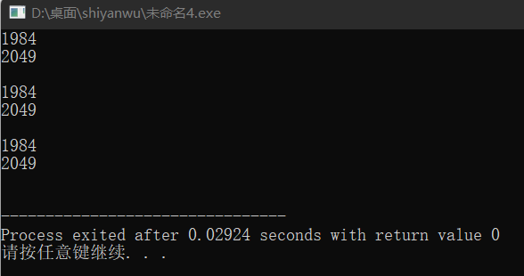 #include<stdio.h> int main() { int x[2][4] = {{1,9,8,4},{2,0,4,9}}; int i,j; int *p; int(*q)[4]; for (i = 0;i<N;++i) { for (j = 0;j<4;++i) printf("%d",x[i][j]); printf("\n"); } for (p = &x[0][0],i = 0;p < &x[0][0] + 8;++p,++i) { printf("%d", *p); if ((i + 1) % 4 == 0) printf("\n"); } for (q = x; q < x + 2; ++q) { for (j = 0; j < 4; ++j) printf("%d", *(*q + j)); printf("\n"); } return 0; }