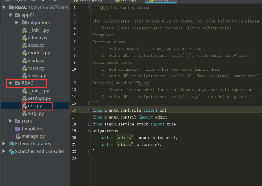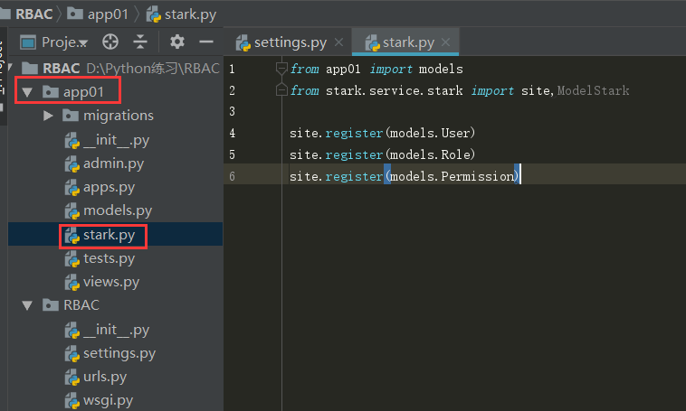 在app01目录下创建 stark 的py文件,并在里面写下如下代码
