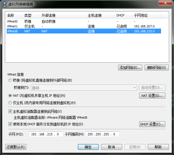 IPADDR=192.168.215.130#只有网卡设置成static时,才需要此字段