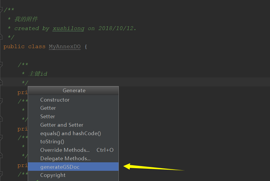 日常开发中给实体类添加get,set方法idea中的确有快捷键,但是是不会生成注释的,而有的公司代码规范是需要注释的,这个时候我们可以使用插件generateGSDoc,