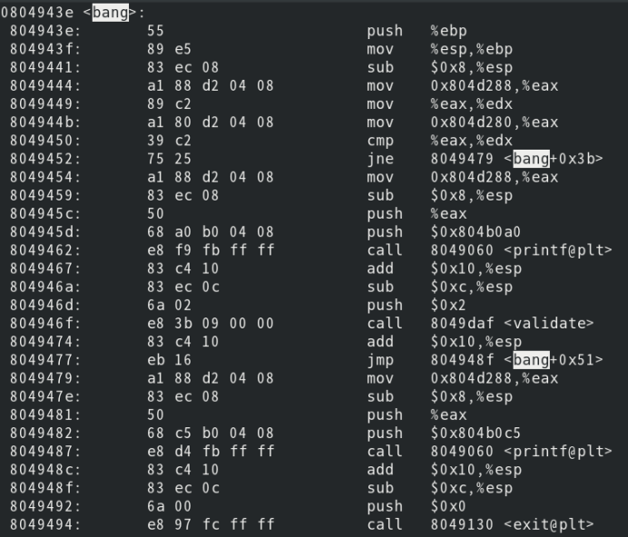 bang()函数首地址0804943e=3e 94 04 08(小端)