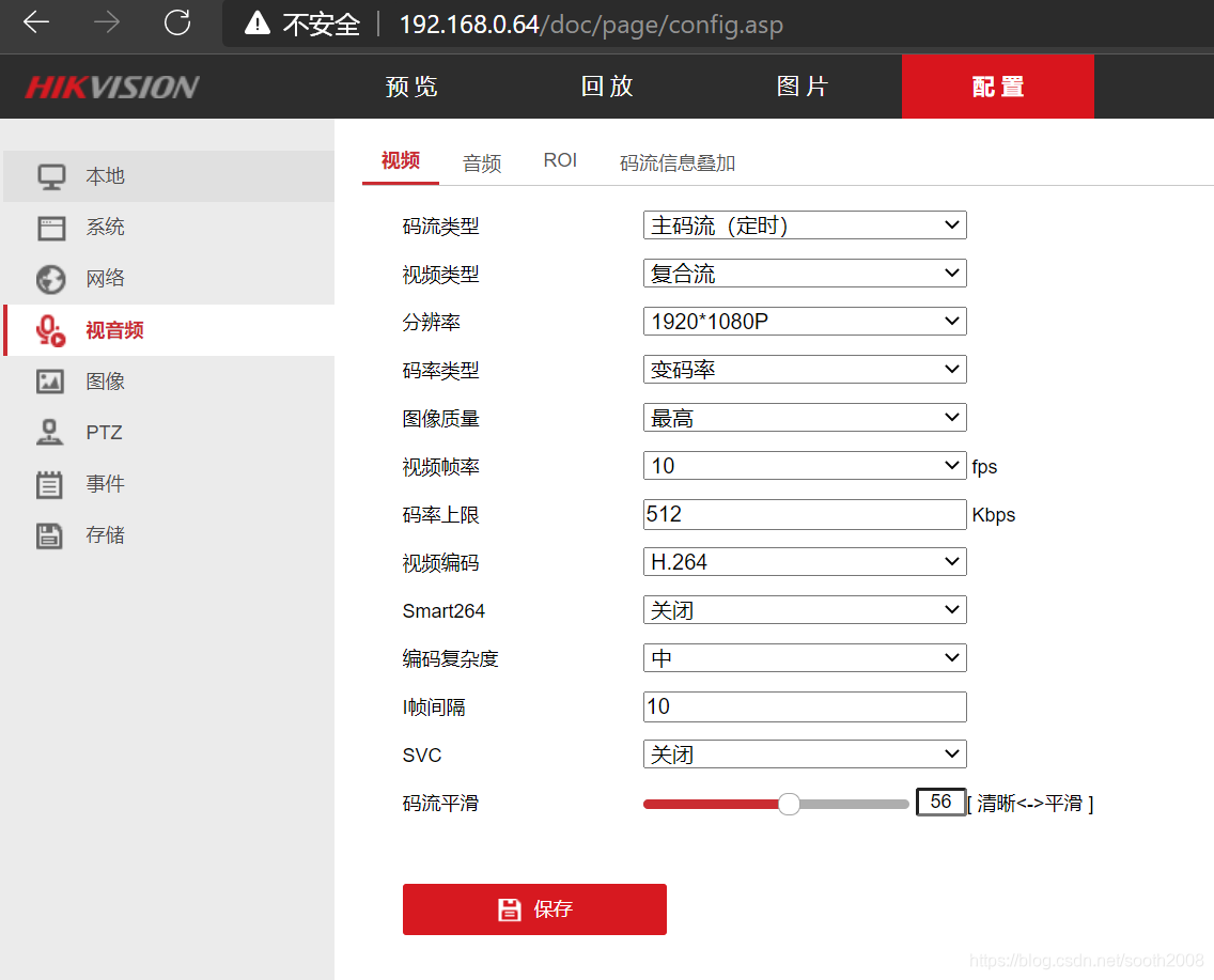 1. 使用浏览器登录海康威视摄像头的管理界面,点击配置选项,可以进入到摄像头的配置界面。
