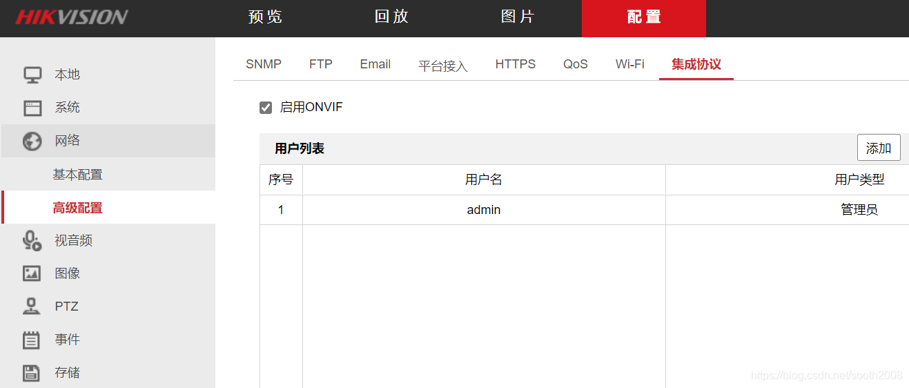 3. 启用ONVIF协议后,还需要添加一个onvif用户,才能正常使用onvif协议。