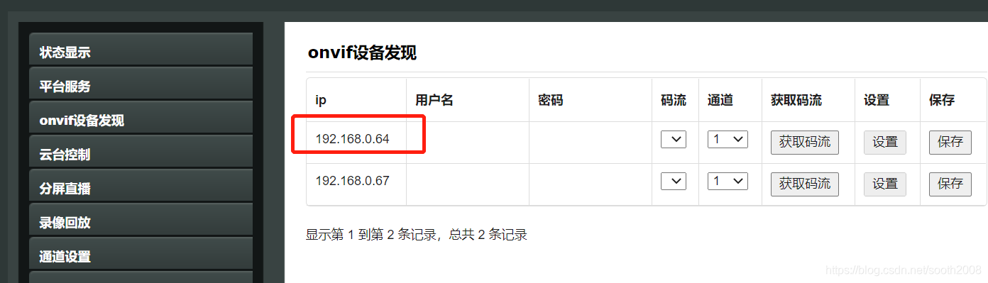 4. 开启onvif协议后,就可以去推流器的配置界面,点击onvif设备发现搜索到摄像头啦