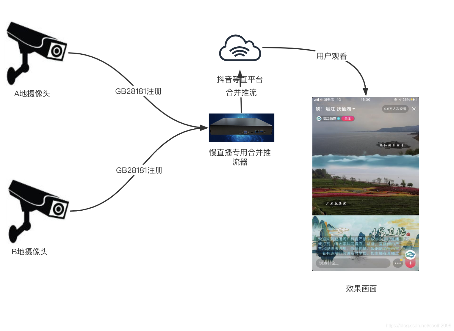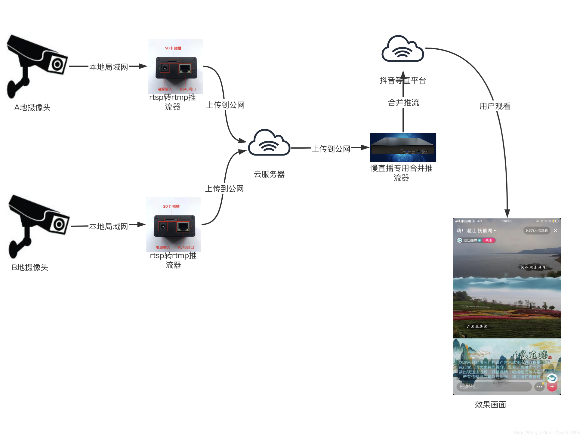 这种方式对网络环境要求低。只要rtsp转rtmp推流器 和慢直播专用合并推流器所处的网络环境可以上网即可。无需公网IP之类的。