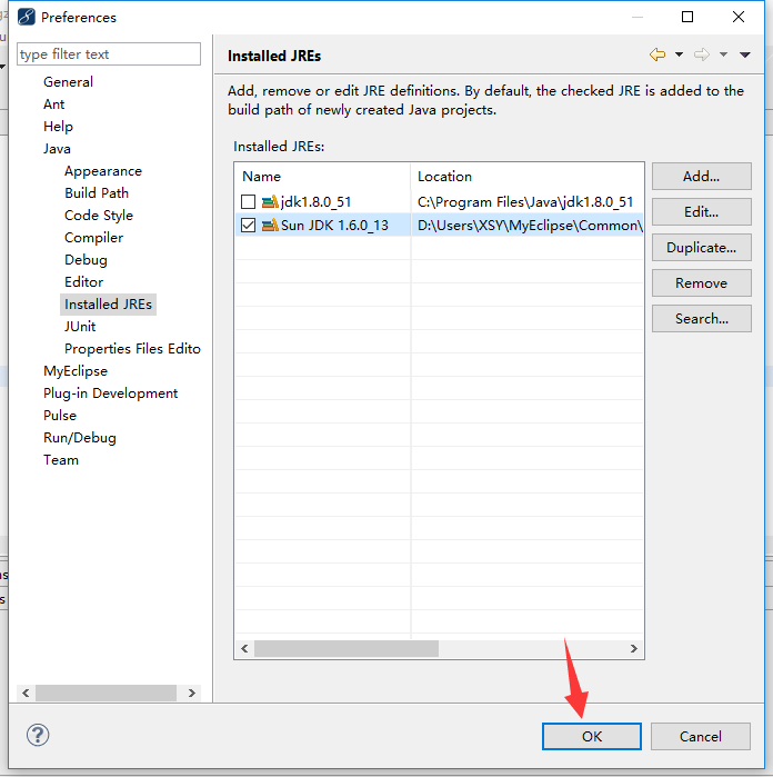 当我们的代码出现这个错误时:The type java.lang.CharSequence cannot be resolved. It is indirectly referenced from required .class files;就是当你在myeclipse引用了不同版本的JDK,解决方法如下图: