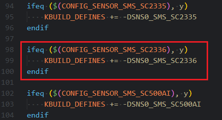 最后再通过menuconfig --> Sensor settings --> Sensor support list --> 勾选 Choose sensor sms_sc2336