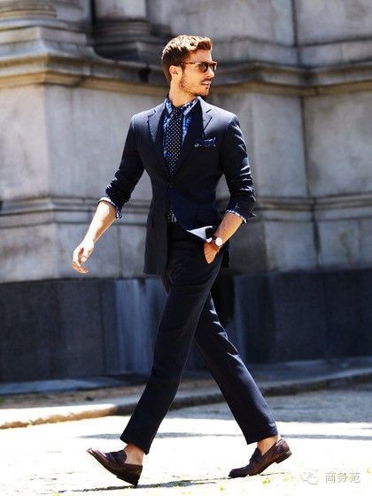 要成为西装型男,基本配备是一定要有的,从最简单的做起,除了挑选一套合身西装之外,你可以发现以同色系成套西装居多,安全也不容易出错,皮鞋的部分则是以黑色或咖啡色为主。冷色系的配冷色系,暖色系的配暖色系,简洁干净,最能体现商务感和正式感的穿法,当然这也是最常见也是最容易上手搭配的。