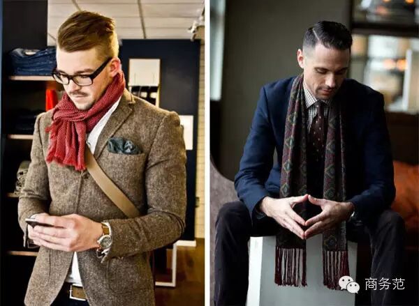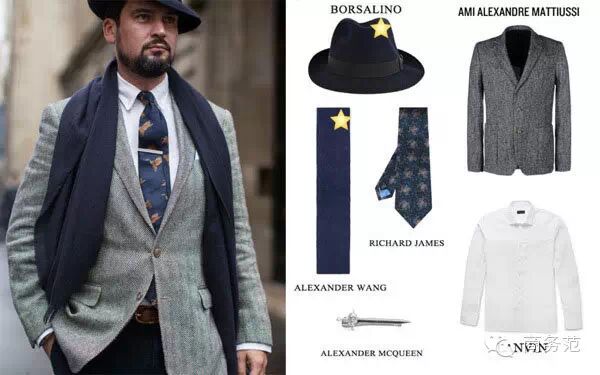 深秋初春天寒怎么穿西装?不想早早披上厚重的风衣?可以用帽子围巾提高保暖系数。既然是“美丽战严寒”,西装的面料也就有讲究,粗花呢是个不错的选择,厚实的同时也照顾到了帽子围脖质地。用色上再下一番功夫,西装也可以穿出暖男风。