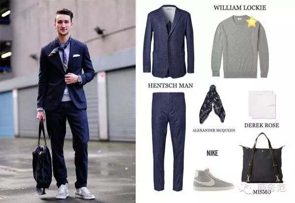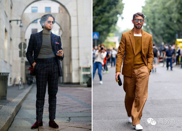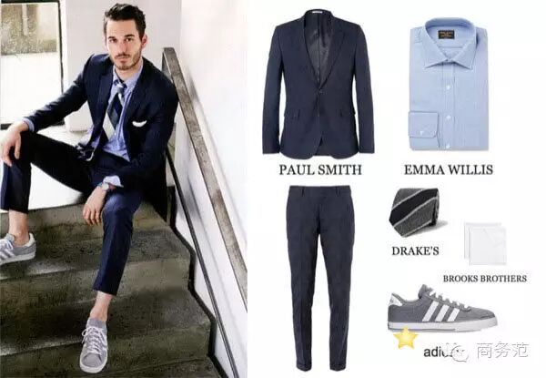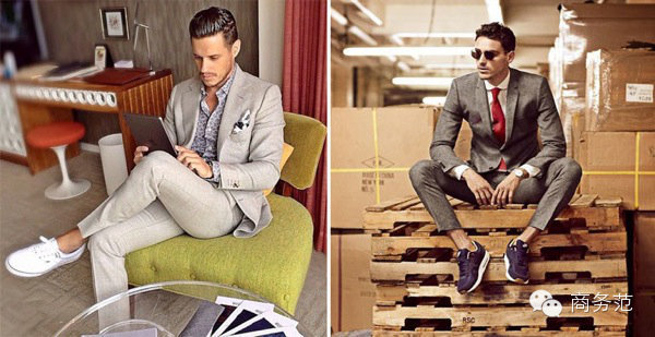 西服衣裤和运动休闲鞋这两种单品气质差以千里却能组合在一起?在敢穿衣会穿衣的达人那里没有什么不可以!想要穿的好,颜色搭配都有讲究:浅灰&灰蓝、亚麻&纯白、浅棕&暗紫,总之颜色中要有一定灰度放之一起才和谐。明白了这点,相信你会混得更加有方更加“肆无忌惮”。