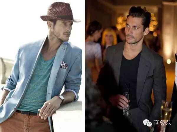 西装搭配T恤,没了领子自然也就可以抛弃领带的束缚了。T恤的选择,夏天短袖,春秋可以长袖,颜色和西装外套相调和。再系一条丝巾,领间又多了一番风情。搭配要点:去繁就简,清爽舒适。