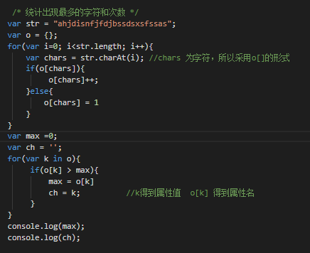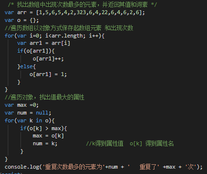 用对象存储的方法实现查找字符串或者数组中重复次数最多的元素!!!!!