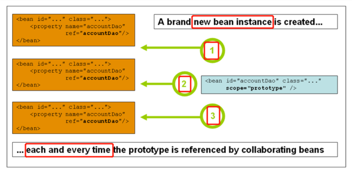 | prototype | Scopes a single bean definition to any number of object instances. |
