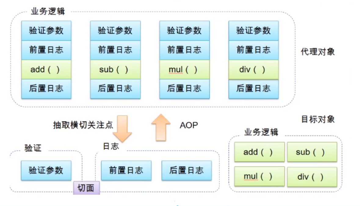 将日志记录,性能统计,安全控制,事务处理,异常处理等代码从业务逻辑代码中划分出来,通过对这些行为的分离,我们希望可以将它们独立到非指定业务逻辑的方法中,进而改变这些行为的时候不影响业务逻辑的代码。