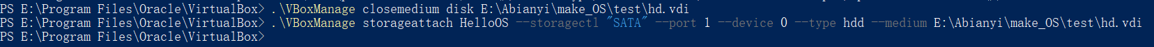 把生成的hd.img 下载到本地主机,接着使用之前的命令将其转化为 hd.vdi文件,挂载到咱们的系统Cosmos下,