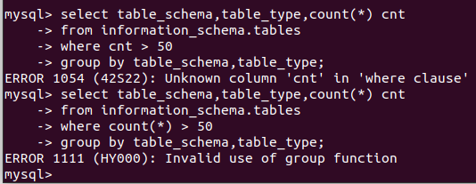 此处我们若是想进一步筛选计数值,可能会想到where子句来进行筛选;