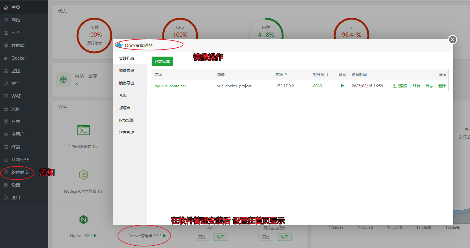 在宝塔中查看与操作Docker(这样上传请记住上传位置,要与dockerfile中的位置保持一致)