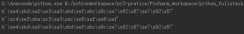 print(bytes('你好,璇璇',encoding='utf-8')) #将str 类型转换为utf_8的bytes类型 print(bytes('你好,璇璇',encoding='gbk')) #将str类型转换为gbk的bytes类型 print(bytes(bytes('你好,璇璇',encoding='gbk').decode('gbk'),encoding='utf-8')) #如果需要进行gbk--->utf-8的转换时,就可以先把按照gbkdecode 一下decode('gbk'),变为str,unicode编码的,然后再bytes('',encoding='utf-8')类型转换为utf_8
