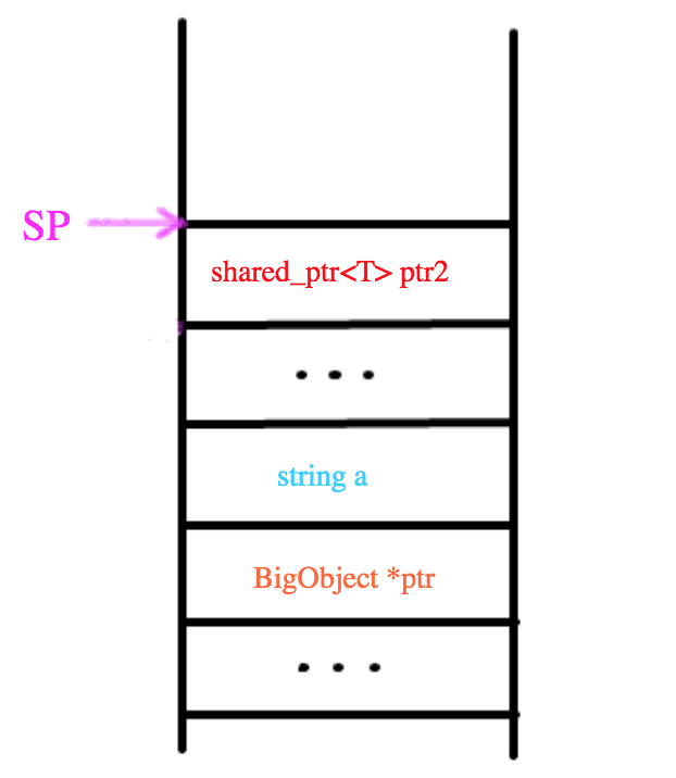 只见线程老哥执行memcpy函数,正在不断覆盖栈空间,智能指针那家伙已经遭殃,马上到我了·······