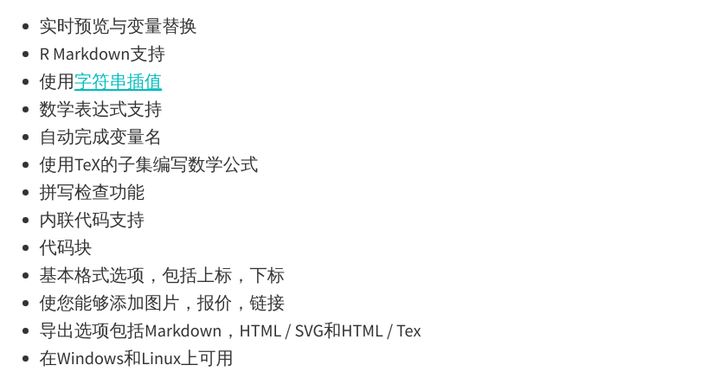 一个有趣的文本编辑器,支持R markdown。使用R中的代码,可以将字符串插值,图形和其他数学表达式添加到文本文档中。