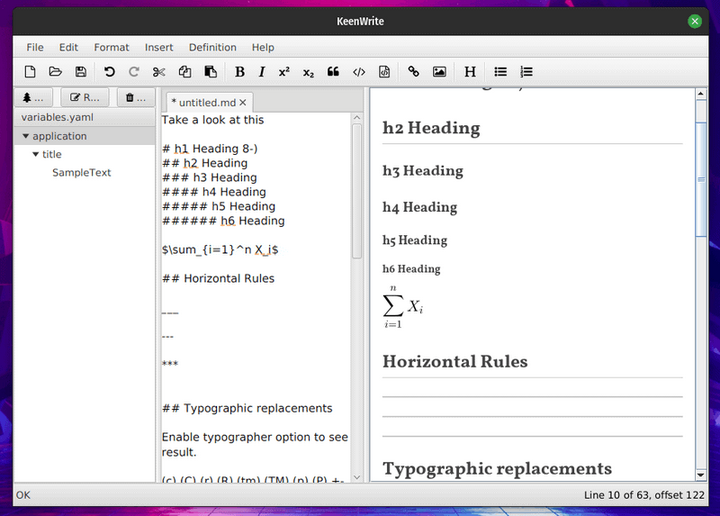 有几种适用于Linux的开源Markdown编辑器,但是KeenWrite对字符串插值和R markdown支持有点有趣。