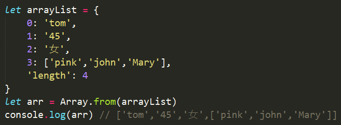 Array.from(): 从类数组对象或者可迭代对象中创建一个新的数组实例