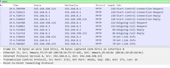 PPTP控制层协议是建立在TCP协议的基础上,所以刚开始即使普通的TCP三次握手