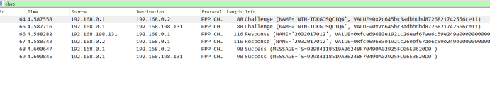根据所给的RFC参考文档熟悉CHAP协议流程以及加解密算法的细节,提取所捕获数据包中相应字段