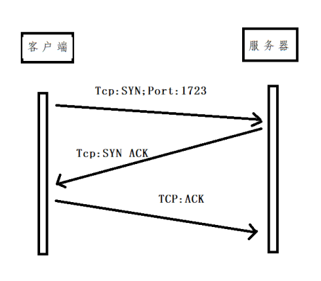 1、 Client端向Server的1723端口发TCPSYN包,请求建立TCP连接。