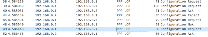2、Server发送一个Configuration Request,把自己的配置参数发送给Client,并向客户端发送ACK表示所有配置参数全部认识且可以接受