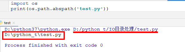 test.py的完整路径是:D:\python_t\IO目录处理\test.py,而不是D:\python_t\test.py,看到这个结果我就泪奔了,不是取绝对路径么?怎么不是真实的完整路径?上级目录不见了?很多疑惑?