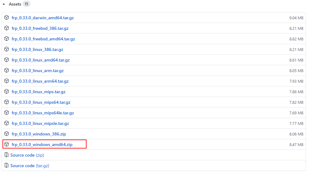 frp下载地址:https://github.com/fatedier/frp/releases