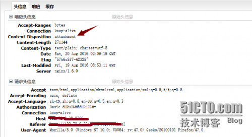 如果配置为add_header Content-Disposition 'p_w_upload:'; 则出现的效果为 火狐点击txt文件时,会提供下载,而不会在浏览器打开,而chrome 浏览器则是会在浏览器中显示