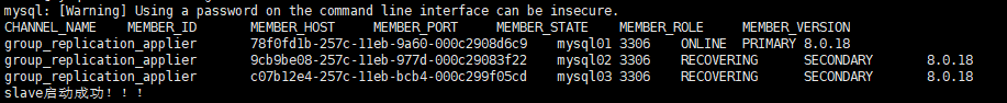 7、在mysql02,mysql03执行sh mgrslavecreate.sh