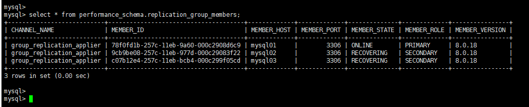 6、到mysql01 执行 sh mgrmastercreate.sh