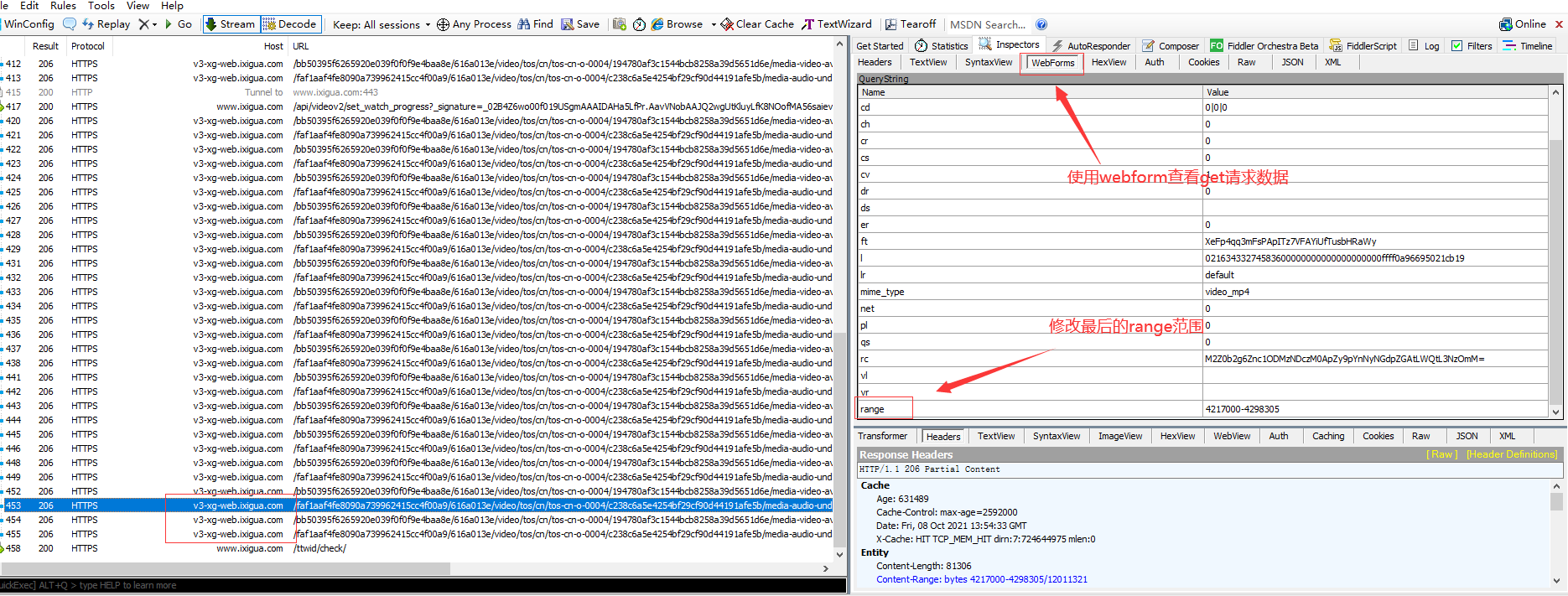 2:其他步骤同上,唯一区别是西瓜把请求byte数据范围放url里,B站在header里