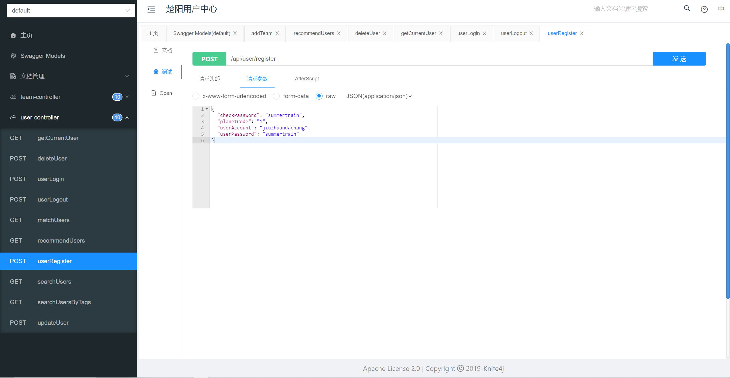 .description("楚阳用户中心接口文档")