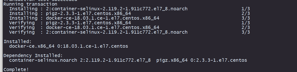 如:yum -y install docker-ce-18.03.1.ce