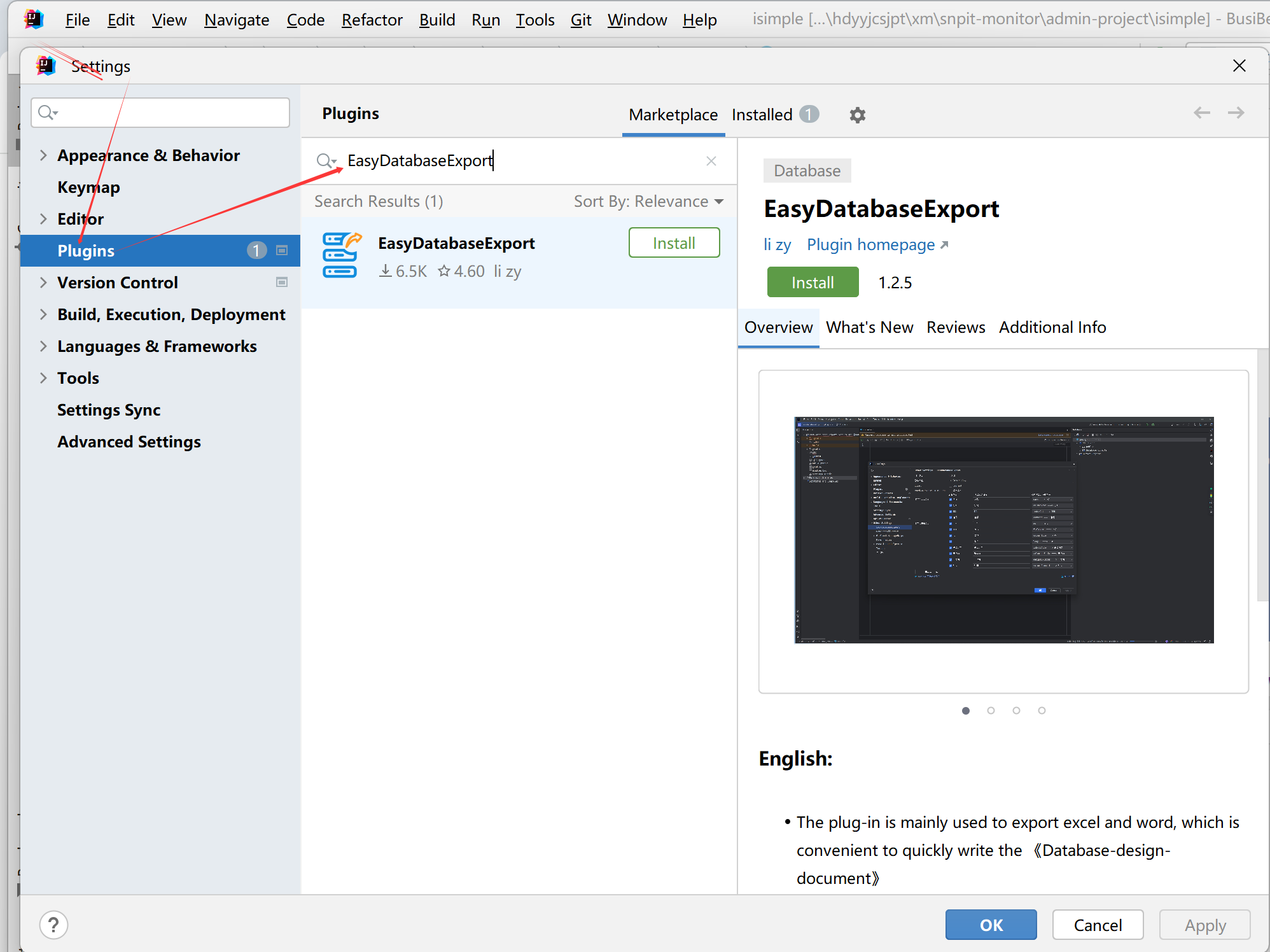 idea 安装插件EasyDatabaseExport